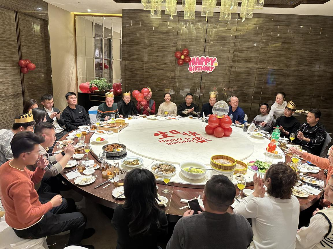 天色將晚,壽星們在雪場夕陽的送別下,前往立達(dá)深航國際酒店參加生日慶祝晚宴。生日蛋糕與美酒佳肴都已就緒,“家宴”的主人翁們歡聚此刻,讓我們共同舉杯、互相感恩、互道祝福、互訴衷腸,唱響熟悉的生日旋律,在愉快、溫馨的氛圍中為此次活動劃上圓滿的句號。讓我們一起心系立達(dá),愛企如家;讓我們共同祝愿各位壽星生日快樂,祝愿我們的華尊立達(dá)集團(tuán)興隆昌盛!