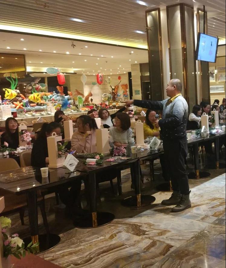 口紅制作師及花藝培訓(xùn)師首先對(duì)花藝?yán)碚撝R(shí)進(jìn)行了介紹,從材料、容器、色彩搭配等方面,詳細(xì)介紹了口紅制作及插花的藝術(shù)造型要素和技巧手法,并在現(xiàn)場(chǎng)做了生動(dòng)的演示。