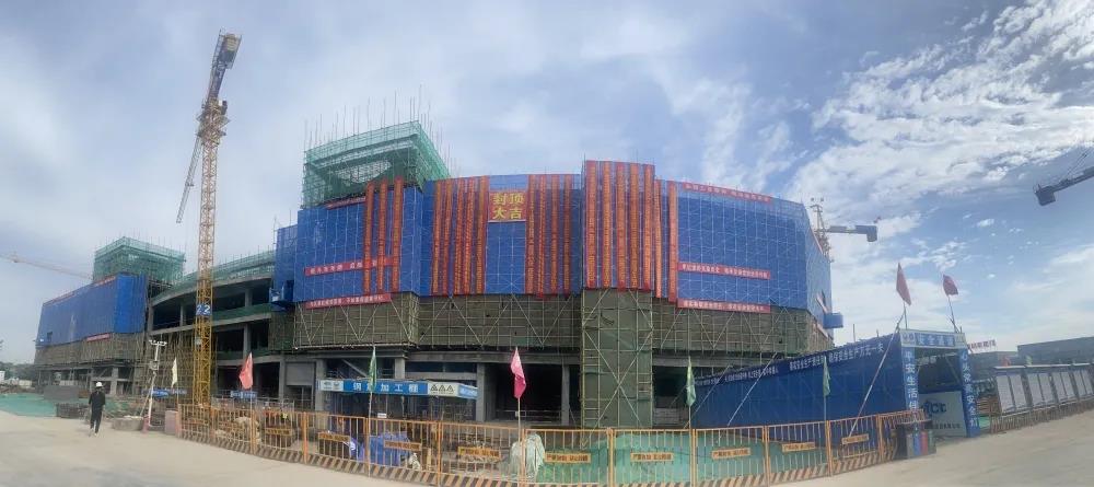 封頂儀式現(xiàn)場(chǎng)鞭炮齊鳴,喜封金頂 ,宏偉雛形初現(xiàn)