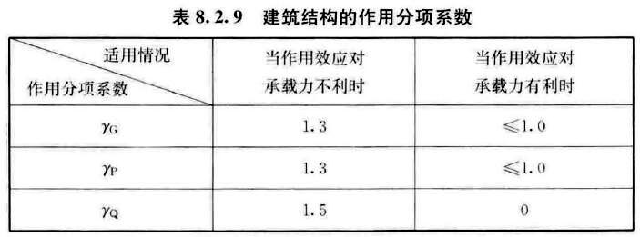 標(biāo)準(zhǔn)8.2.9 建筑結(jié)構(gòu)的作用分項(xiàng)系數(shù),應(yīng)按表8.2.9采用。