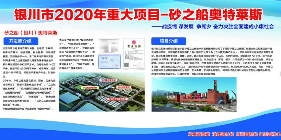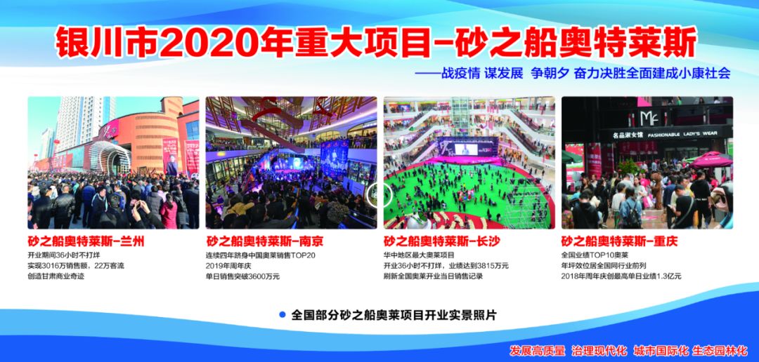 砂之船(銀川)奧特萊斯項目是銀川市2020年重大項目。項目由寧夏華尊立達(dá)房地產(chǎn)開發(fā)集團(tuán)有限公司和重慶砂之船集團(tuán)合作建設(shè)運(yùn)營,該項目位于友愛路和六盤山路交匯處西北角(立達(dá)博覽城65號地)。項目由華尊立達(dá)集團(tuán)負(fù)責(zé)開發(fā)建設(shè),砂之船集團(tuán)負(fù)責(zé)招商、管理、運(yùn)營。