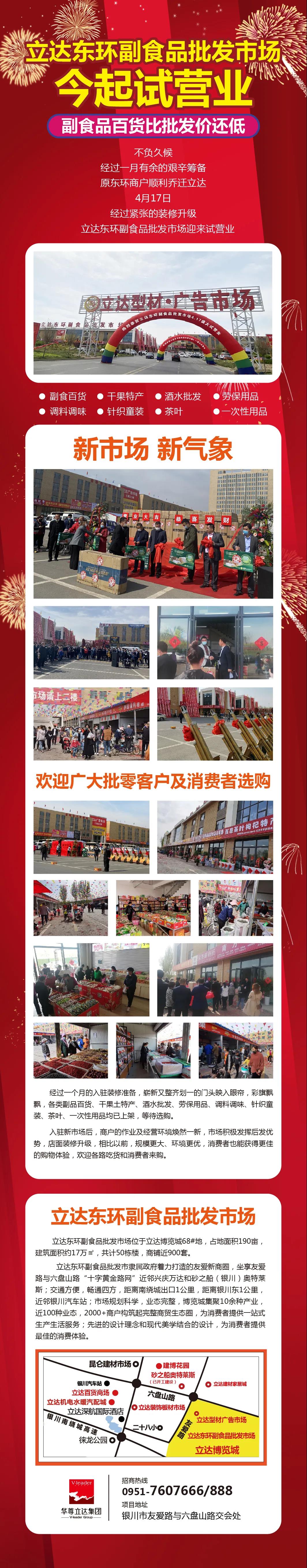立達(dá)東環(huán)副食品批發(fā)市場今起試營業(yè),副食品百貨全場大減價,比批發(fā)價還低!邀你來購!