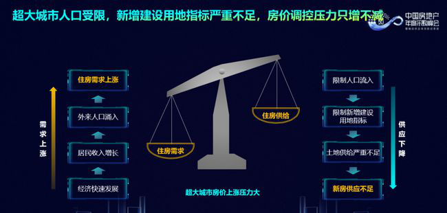 我國(guó)的經(jīng)濟(jì)發(fā)展強(qiáng)調(diào)雨露均沾的模式,勢(shì)必導(dǎo)致經(jīng)濟(jì)發(fā)達(dá)的城市房?jī)r(jià)還是會(huì)有巨大的上漲壓力,但是房?jī)r(jià)必須得控住,所以必然會(huì)招至更加嚴(yán)厲的政策調(diào)控,這是我們得出的結(jié)論。一方面,對(duì)于超大城市來說,由于經(jīng)濟(jì)發(fā)展快所以居民收入在提高,不斷吸引外來人口涌入,導(dǎo)致住房需求上漲,所以房地產(chǎn)的“供”有些不應(yīng)“求”,是所有發(fā)達(dá)城市面臨的問題。另一方面,超大城市人口受限,新增建設(shè)用地指標(biāo)嚴(yán)重不足,勢(shì)必導(dǎo)致新房供應(yīng)不足房?jī)r(jià)上漲壓力增大,所以必然也會(huì)有更加嚴(yán)密的政策調(diào)控。現(xiàn)在已經(jīng)沒有機(jī)會(huì)跟大家探討房?jī)r(jià)該不該漲了,就是不能漲,這已經(jīng)是一個(gè)前提條件,這是所有從業(yè)者面臨的環(huán)境。