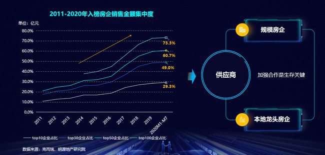 第一,總量拐點(diǎn)大背景下,行業(yè)集中度會(huì)進(jìn)一步加強(qiáng),強(qiáng)者更強(qiáng),這是行業(yè)未來最重要的特點(diǎn)。加大與規(guī)模房企及本地龍頭企業(yè)的合作,是供應(yīng)商后續(xù)生存的關(guān)鍵。行業(yè)規(guī)模越來越集中,未來供應(yīng)商應(yīng)該更多找尋高潛客戶,加強(qiáng)與規(guī)模房企及本地頭龍企業(yè)的合作,這會(huì)成為常態(tài)。比如說濱江模式,1000億的銷售額一共不超過8家總包單位,這就是未來的常態(tài)。
